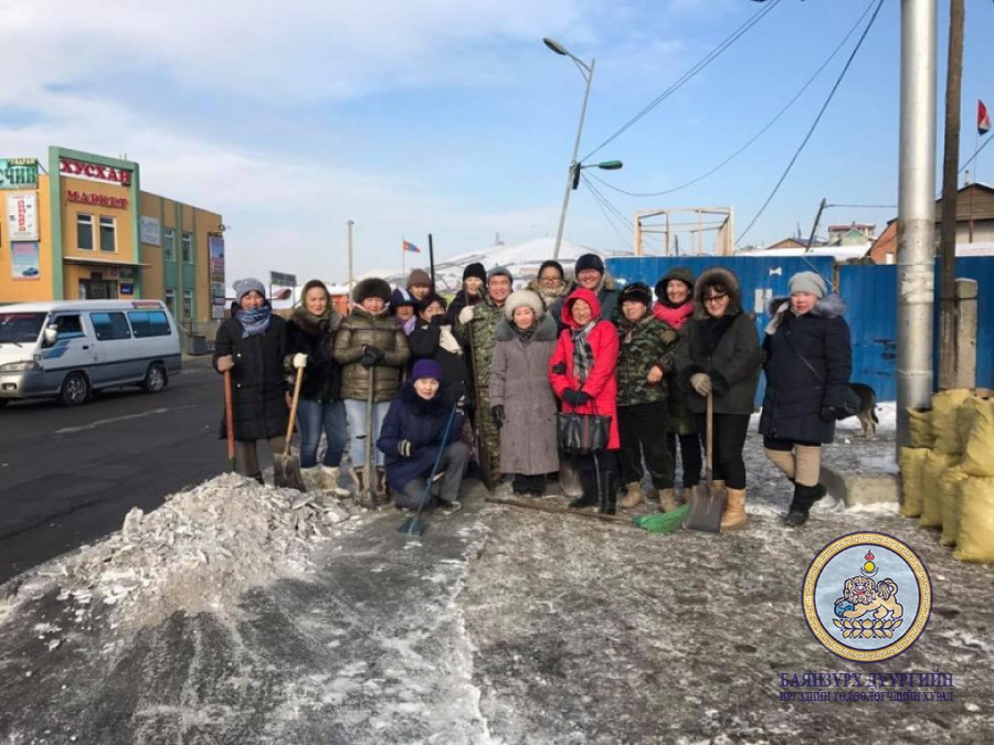 Улс тунхагласны баярын өдөр 27-р хорооноос Дүүргийн Иргэдийн Төлөөлөгчдийн Хуралд төлөөлөгчөөр сонгогдсон Э.Эрдэнэ, Л.Батдэлгэр нар 27-р хорооны хамт олон, иргэд, ААН-үүдтэй хамтран Дарь Эхийн замын явган хүний замын цасыг цэвэрлэлээ. Нийт 400 гаруй иргэд оролцож, 3.2км замыг халтиргаа гулгаанаас сэргийллээ.