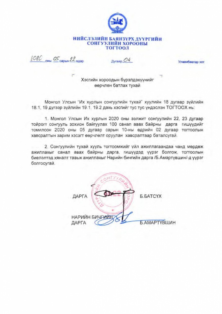 Монгол улсын Их хурлын 2020 оны ээлжит сонгуулийн хэсгийн хороодын бүрэлдэхүүн