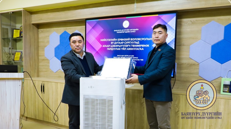 БНСУ-ын AIRPLUS компани, БНСУ-ын Эрчим хүчний хороо, Гамшгийн эсрэг техник туслалцааны төвтэй Баянзүрх дүүргийн иргэдийн Төлөөлөгчдийн Хурал хамтран сүүлийн үеийн, өндөр хүчин чадалтай агаар цэвэршүүлэгчийг Баянзүрх дүүргийн 87 дугаар сургууль болон “Өнөр бүл” асрамжийн газар, түр хамгаалах байрнууд, ахмадын асрамжийн газарт нийт 40 ширхгийг гардууллаа.