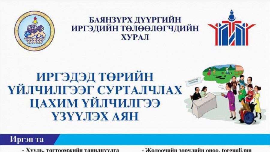 Явуулын иргэний танхимын үйлчилгээг хороодоор үзүүлж эхлээд байна 2017/09/26 Баянзүрх дүүргийн иргэдэд төрийн үйлчилгээг ойртуулах, хялбаршуулсан байдлаар цахим хэлбэрээр …